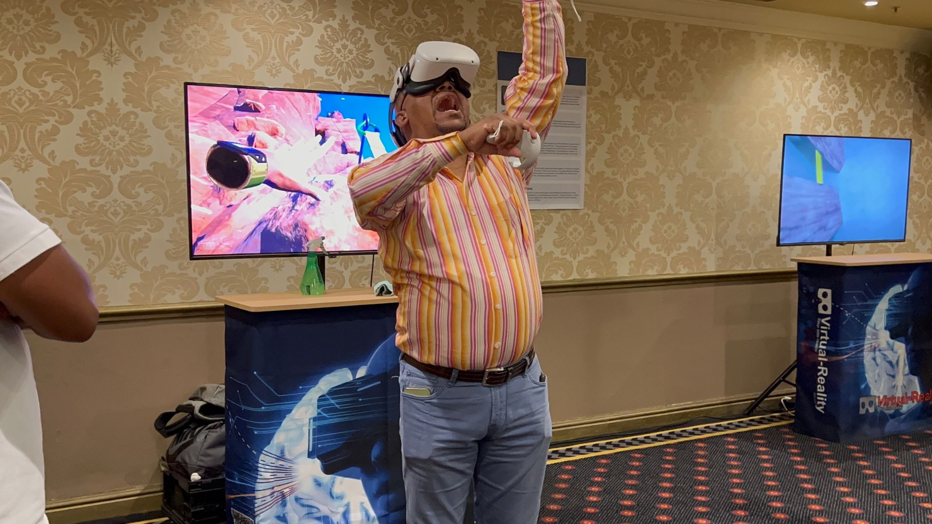 Beyond individual capabilities, the Quest 2's effortless compatibility with live streaming platforms was crucial to the event's triumph. This feature enabled organizers to broadcast participants' VR experiences live, effectively bridging the virtual and real worlds. Spectators could engage with the ongoing action on expansive screens, fostering an interactive relationship between headset users and the audience. This seamless integration of technology and storytelling turned each participant's journey into a shared narrative, enhancing the overall immersive experience.